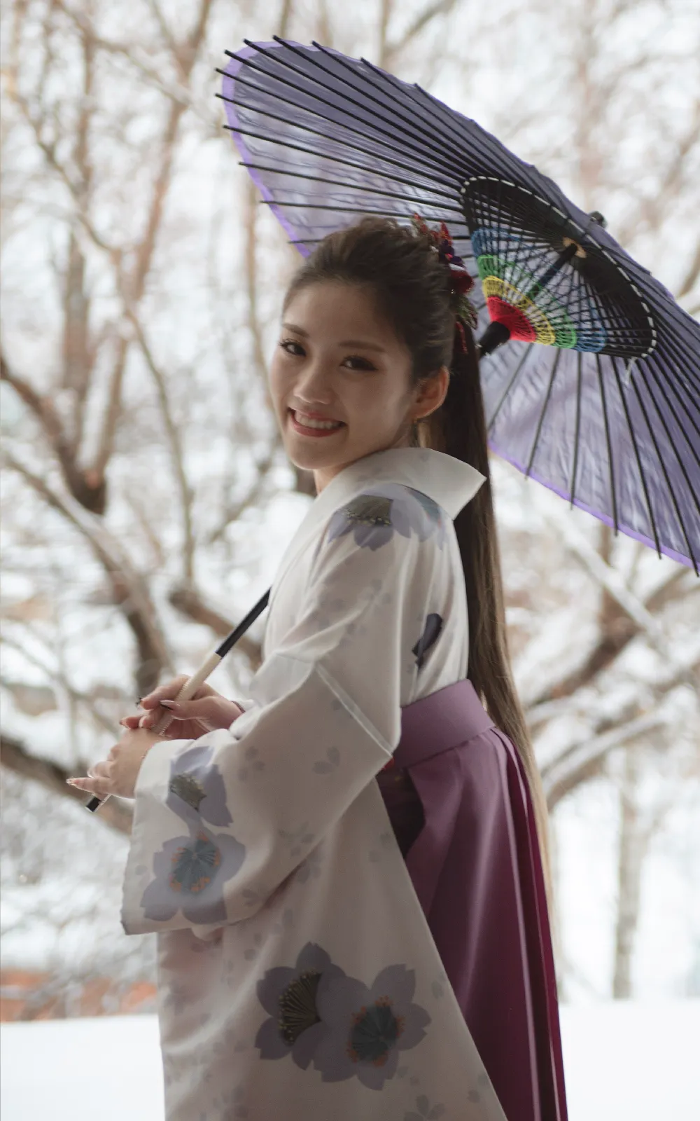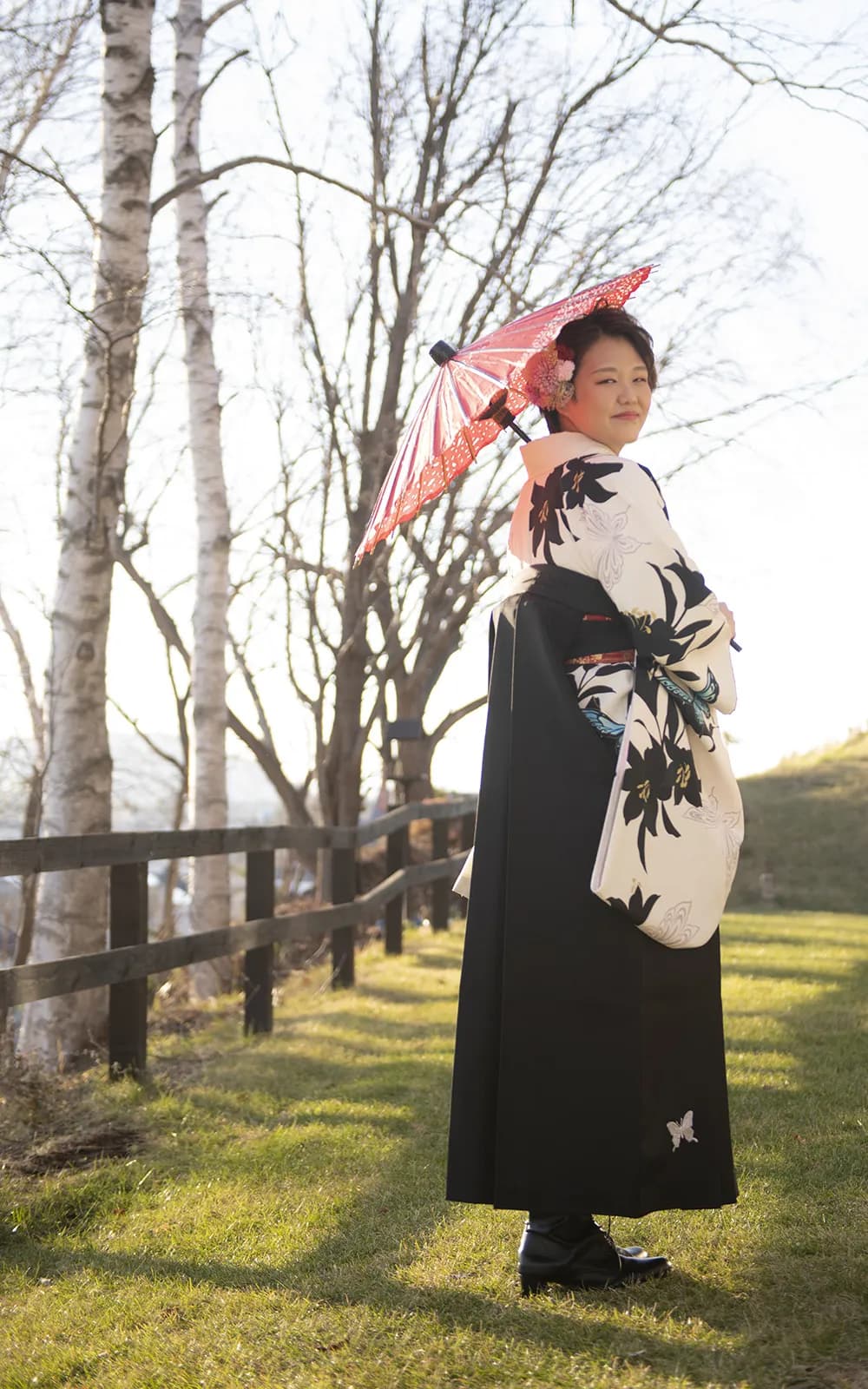 まるみ衣裳店では、卒業式を迎える皆様のために特別なレンタルプランをご用意しております。400着以上の豊富なラインナップから、お好みのお着物と袴の組み合わせを自由に選べます。北見市内の学生さんには、卒業式当日の仕度とお写真を無料で提供。お持ちのお着物に合わせた袴単品レンタルも可能です。店舗でじっくりと試着し、細かい小物までコーディネートすることで、思い出に残る卒業式をお手伝いします。