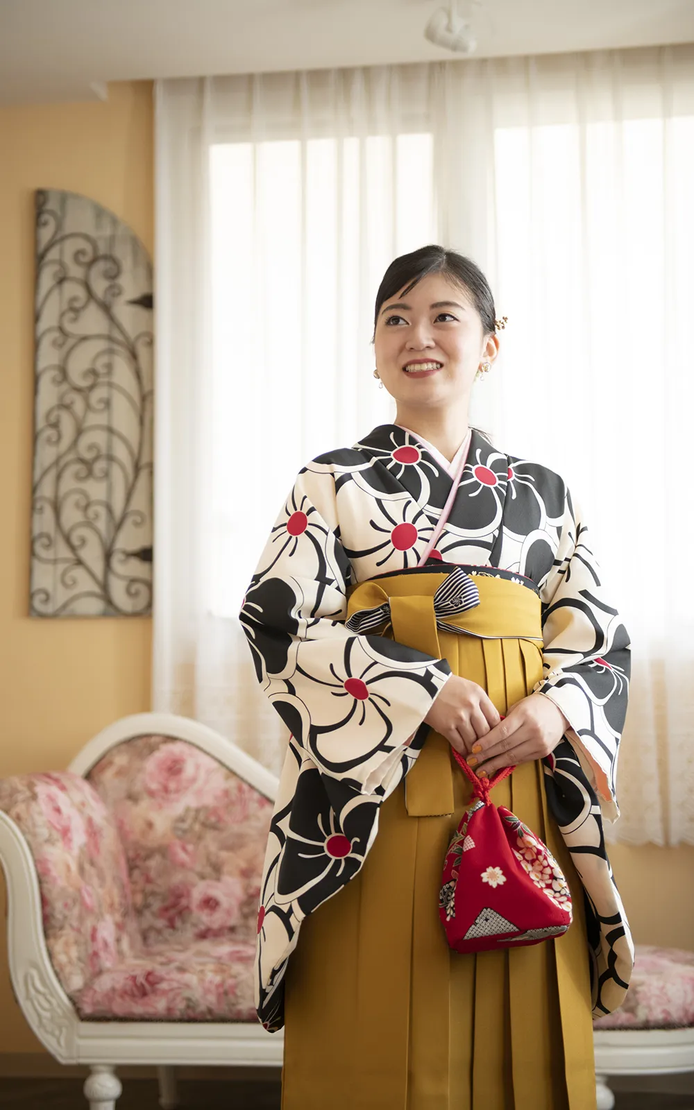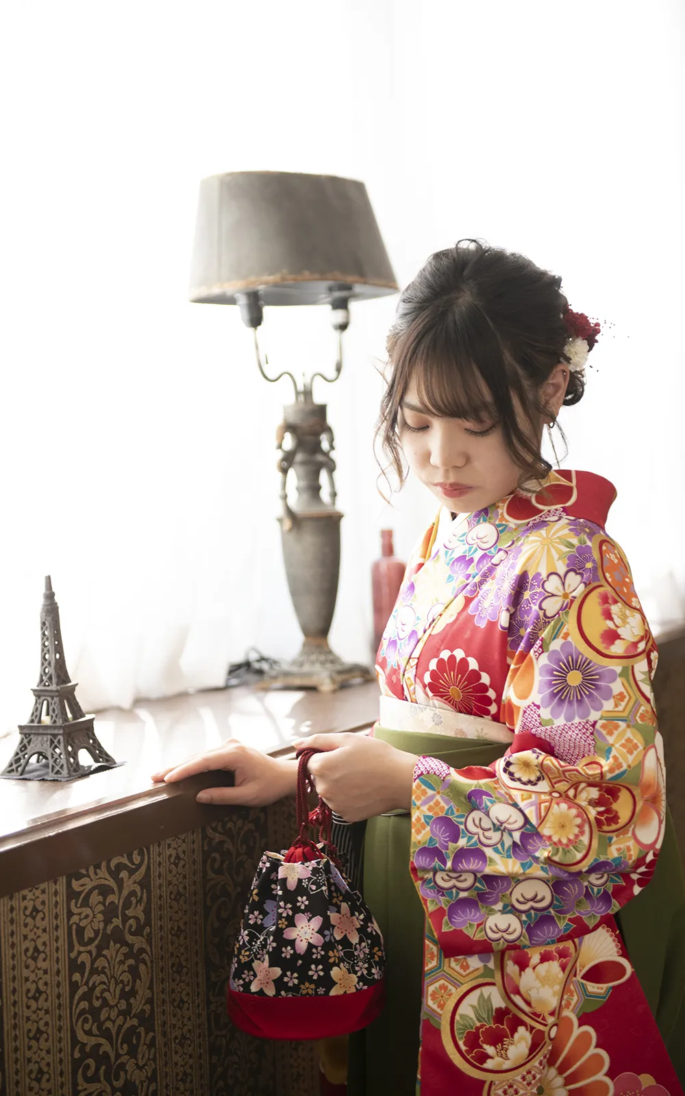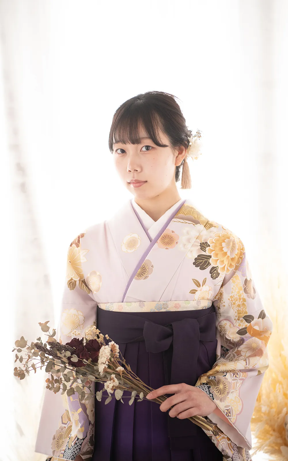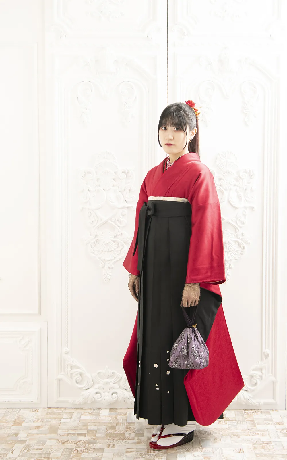 ■ 衣裳 9点(中振袖、袴、半幅帯、長襦袢、衿芯、重ね衿、草履、防寒草履、巾着)■ 着付け ■ ヘアセット ■ 写真1ポーズ