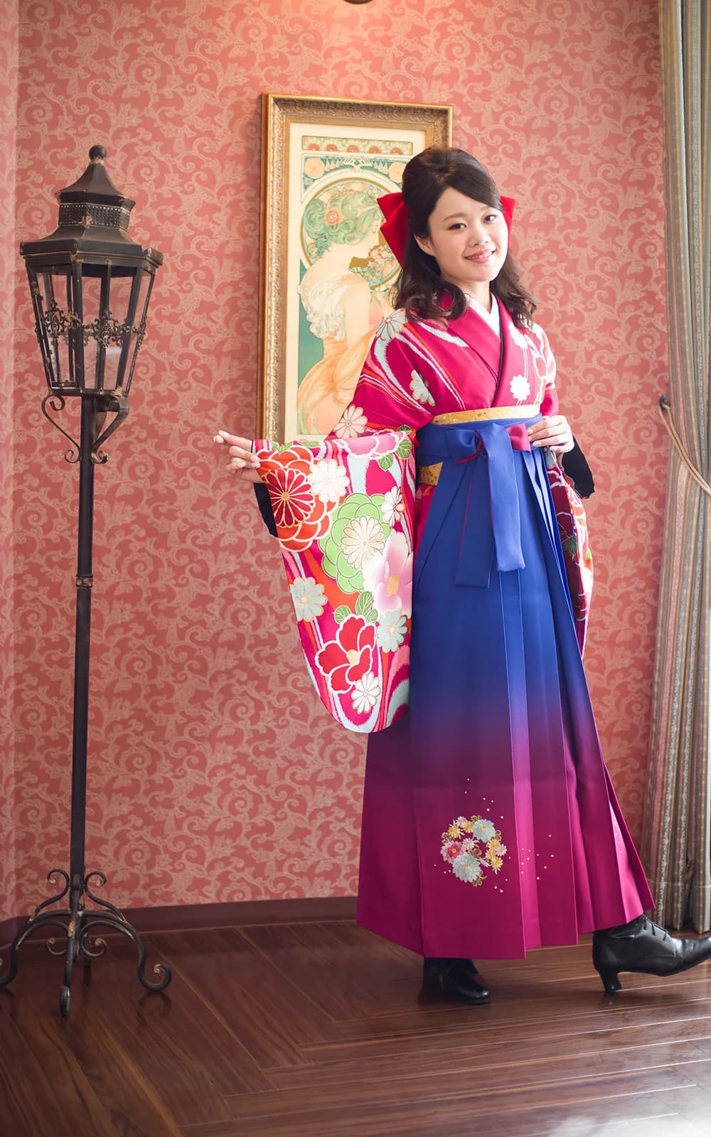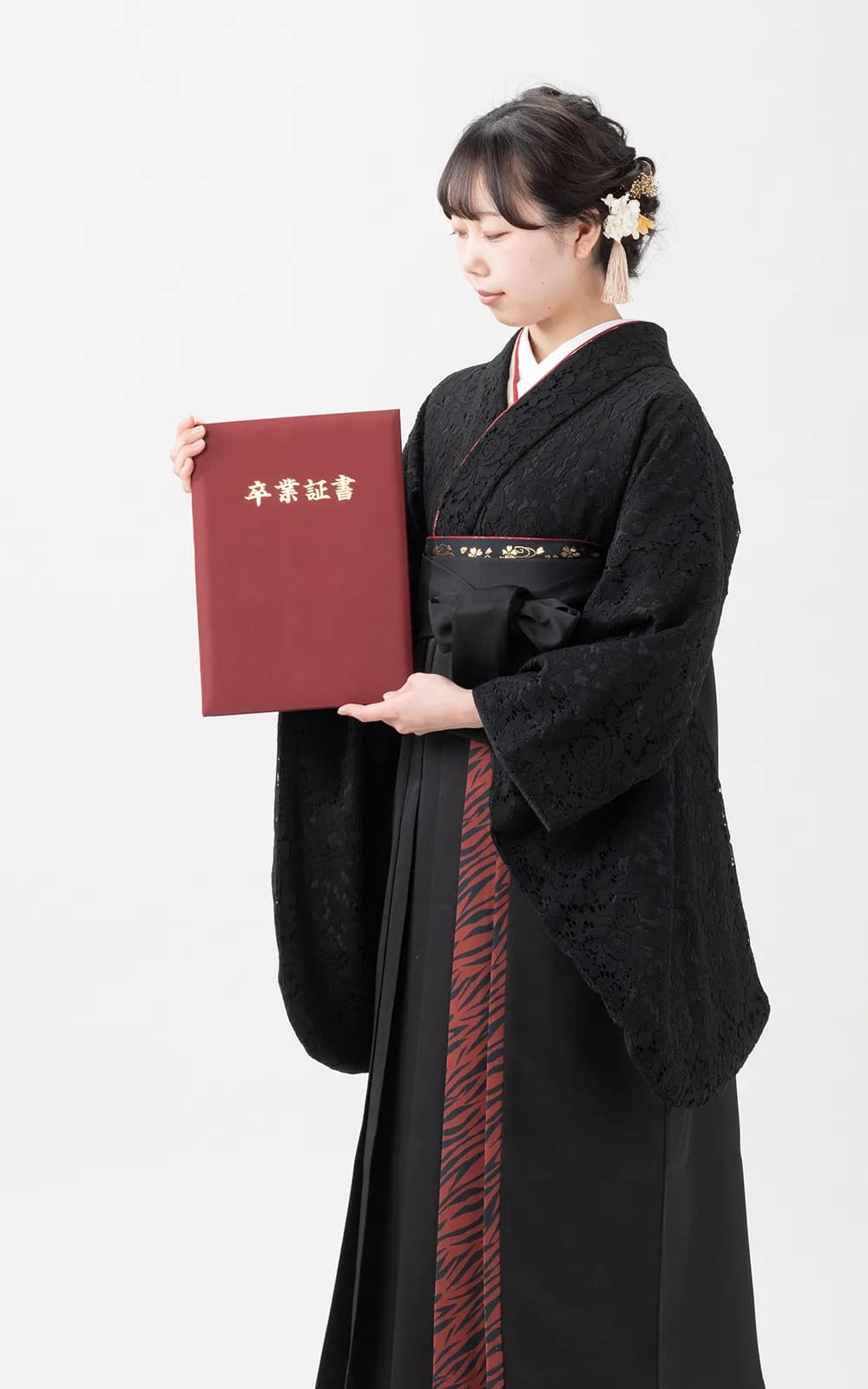 卒業式当日のお仕度や写真もついたお得なプラン。着物と袴、お履き物と中着がすべてセットのプランです。