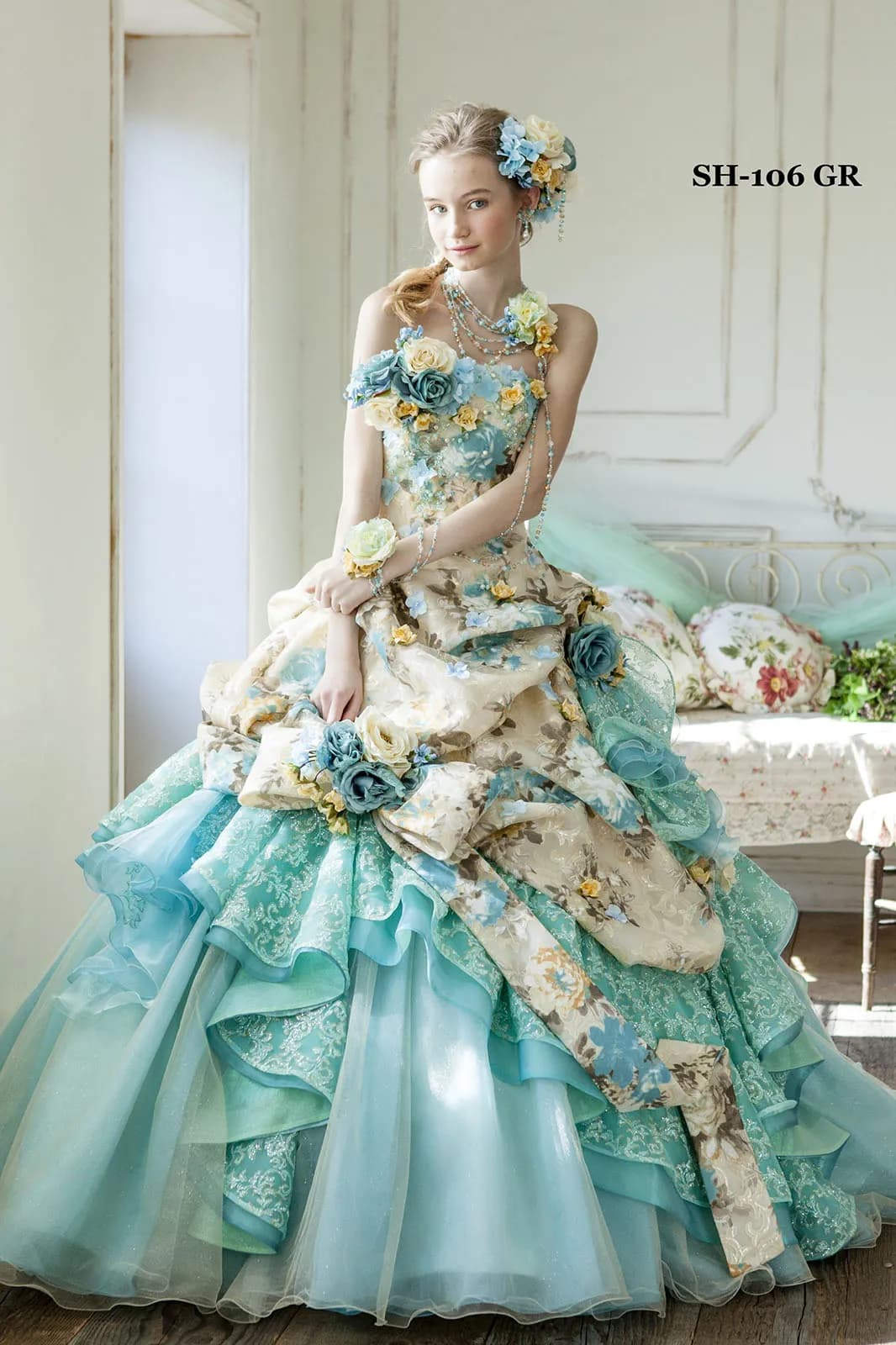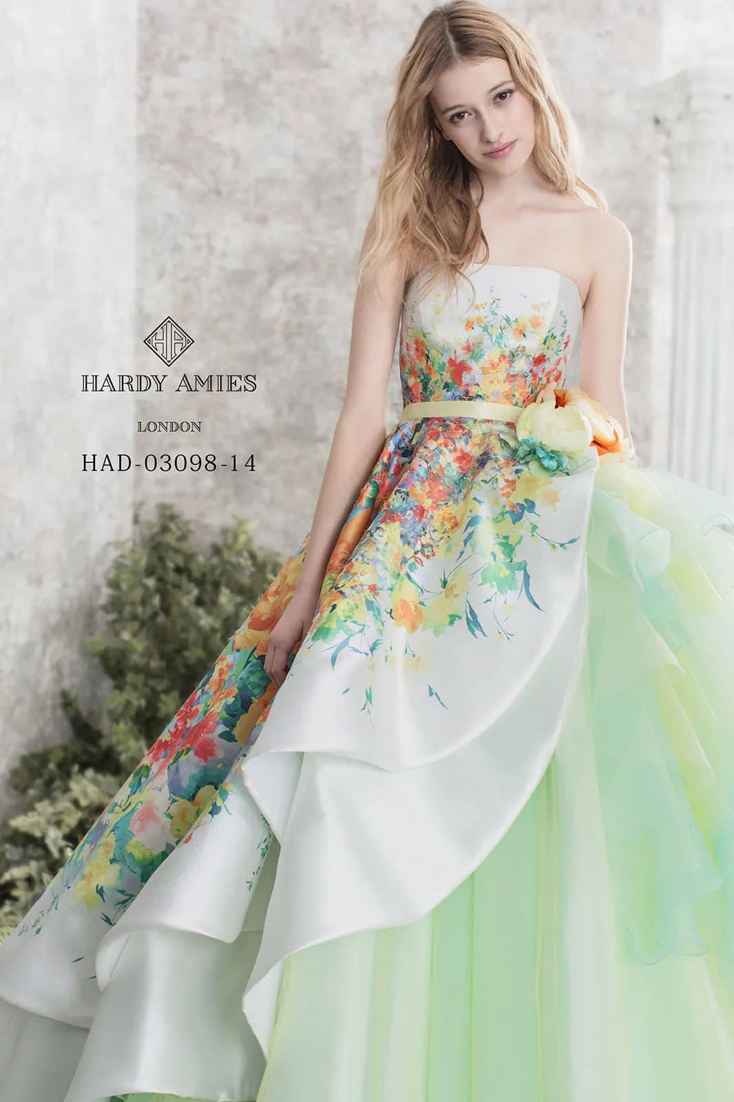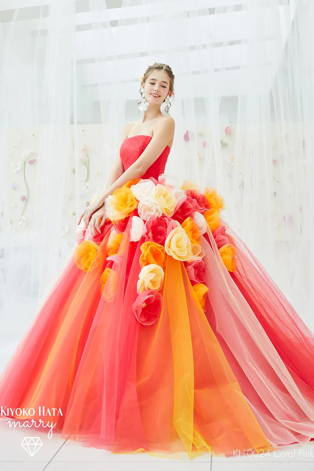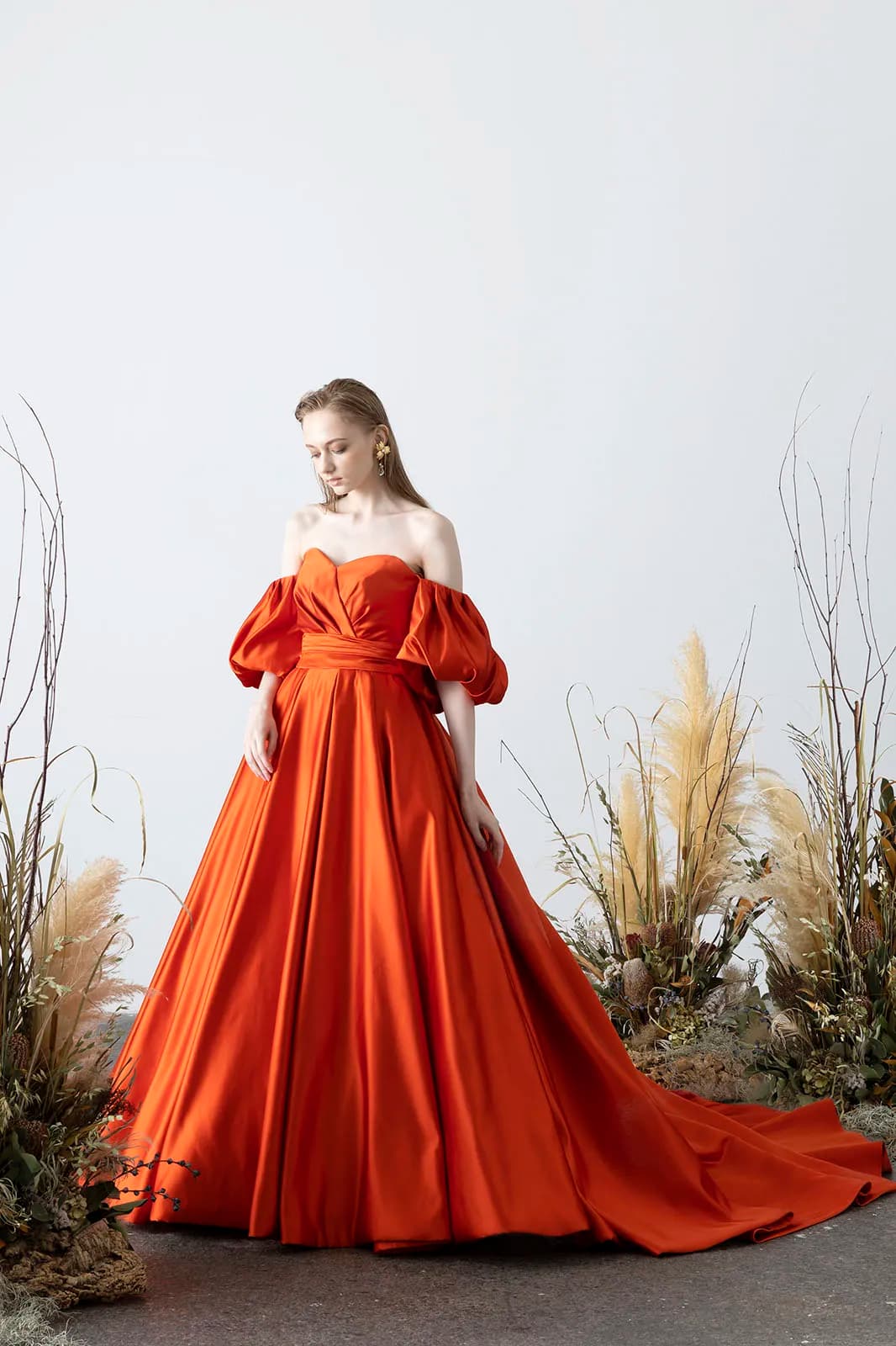 カラードレスは多彩なお色の中からの選択となりますが、自身の好きな個性を表現できるドレスを見つけるためには、 季節感や、披露宴会場の雰囲気を考えると、より素敵な花嫁姿を実現できるでしょう。 また、ウエディングドレスと全く異なるラインを選ぶことで、ギャップを楽しむこともできます。 キャンドルサービスや、お客様のお見送り等、列席の方との距離が近いことが多いので、 アクセサリーやブーケもトータルコーディネートされることをお勧め致します。