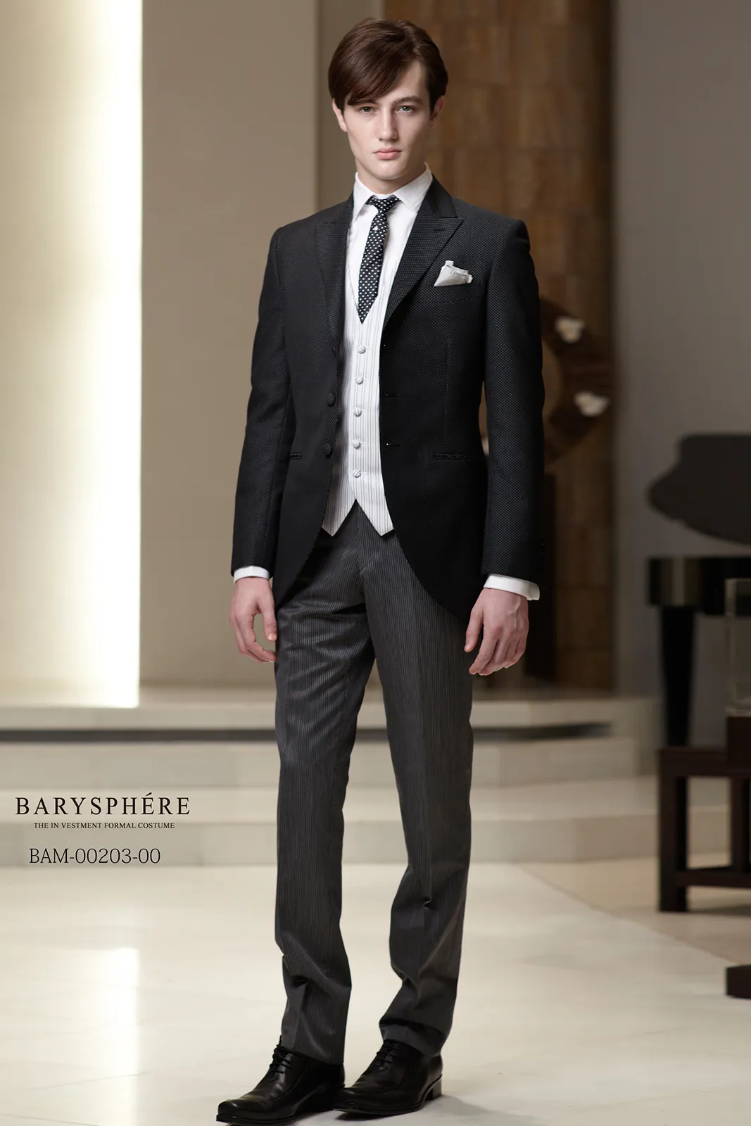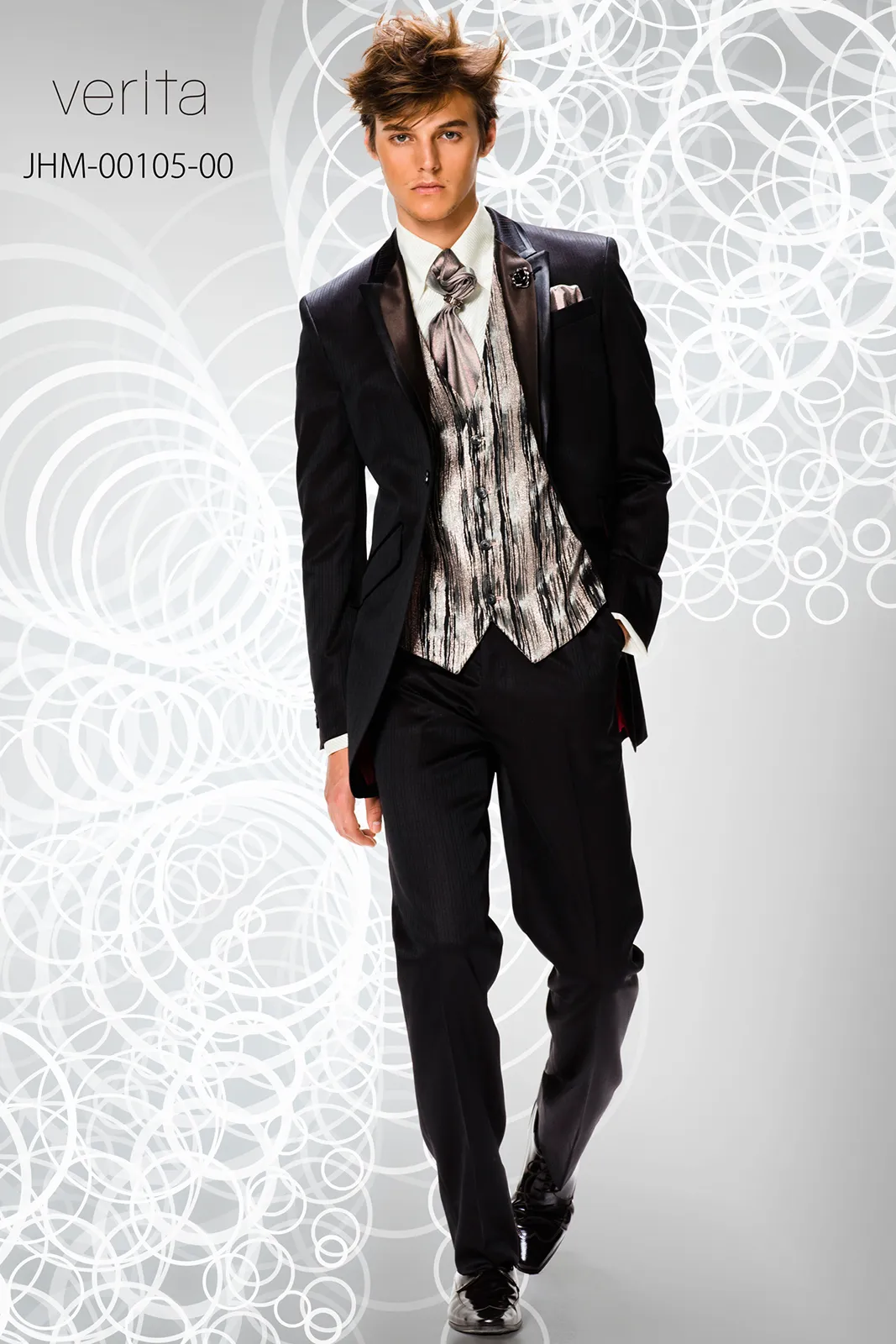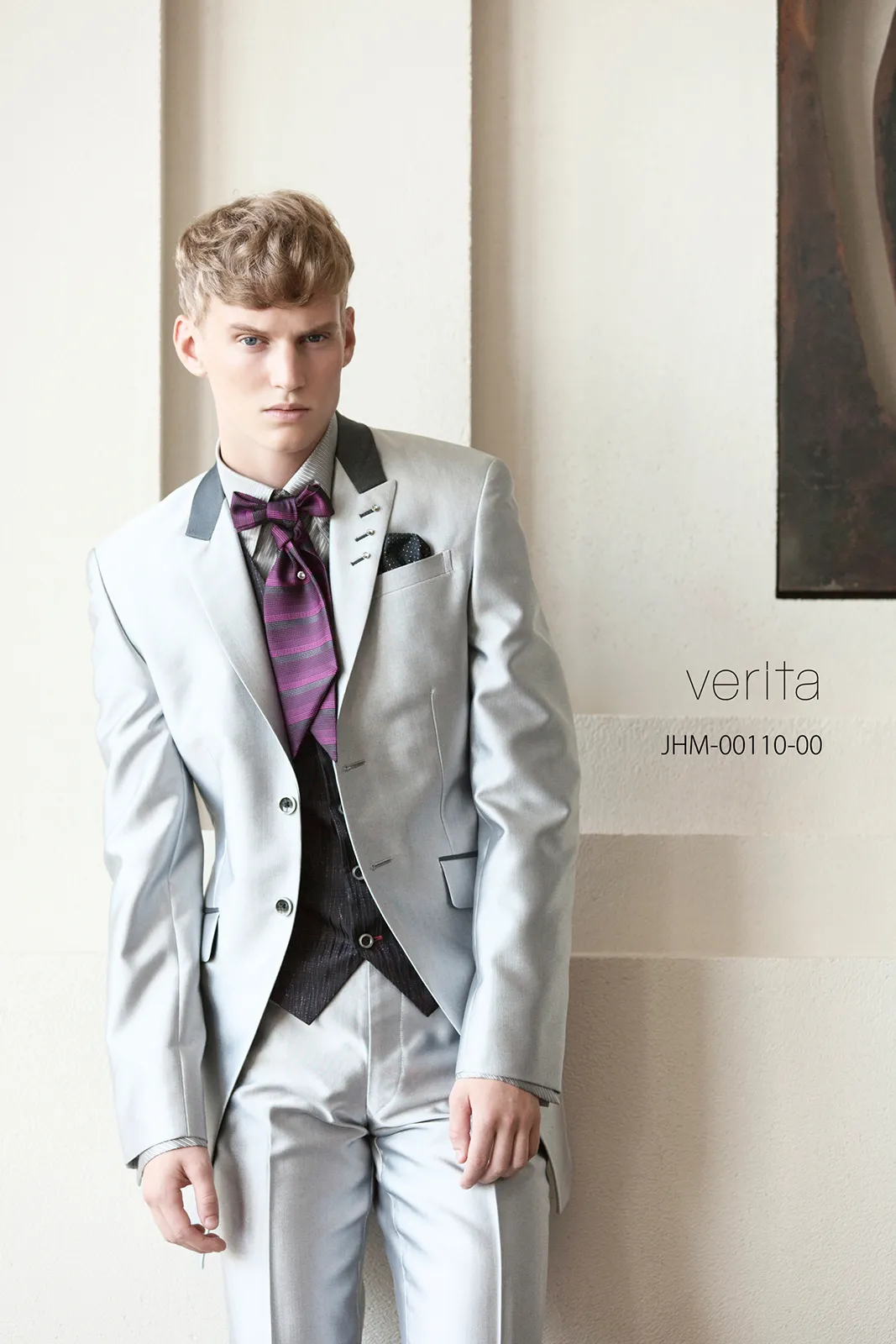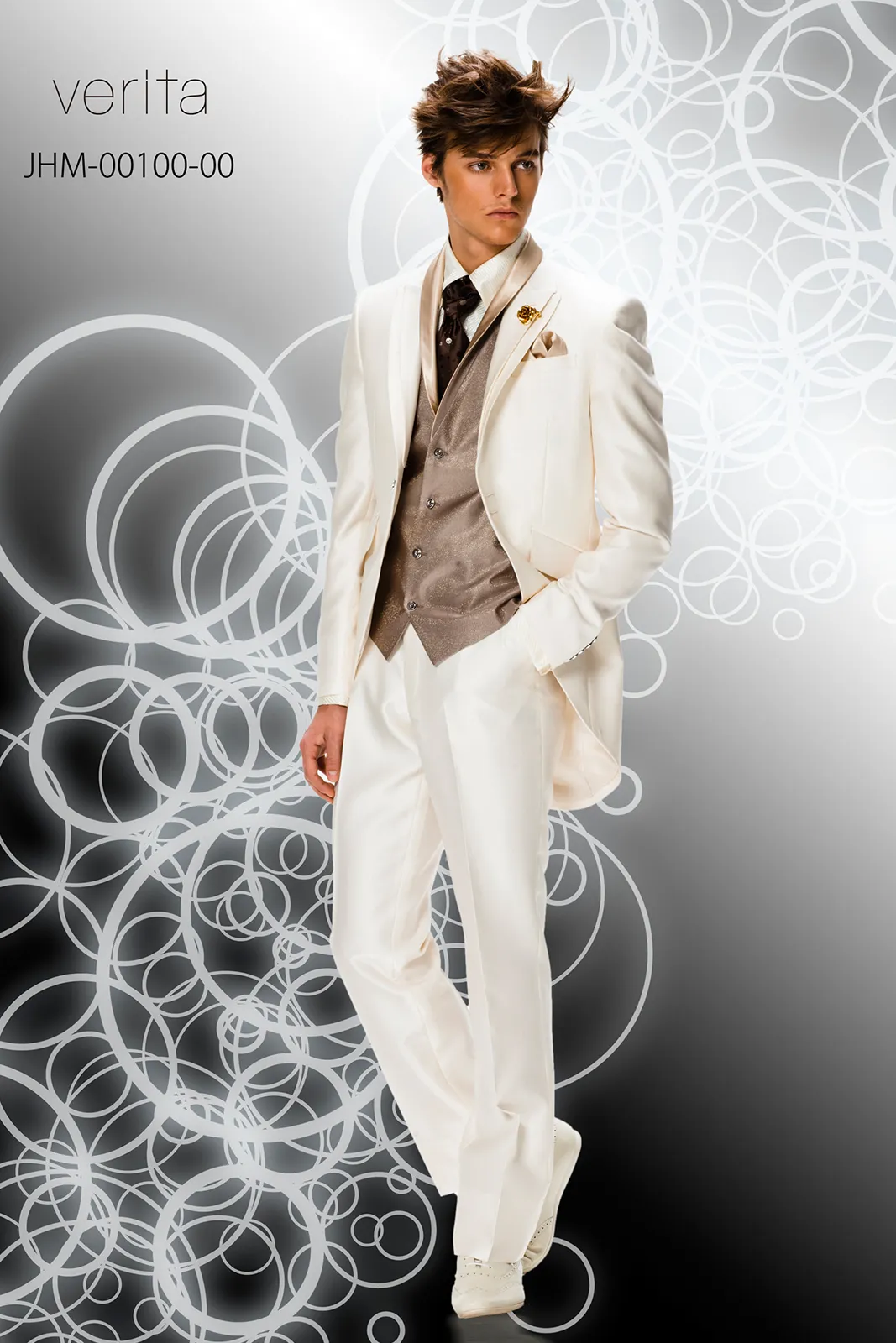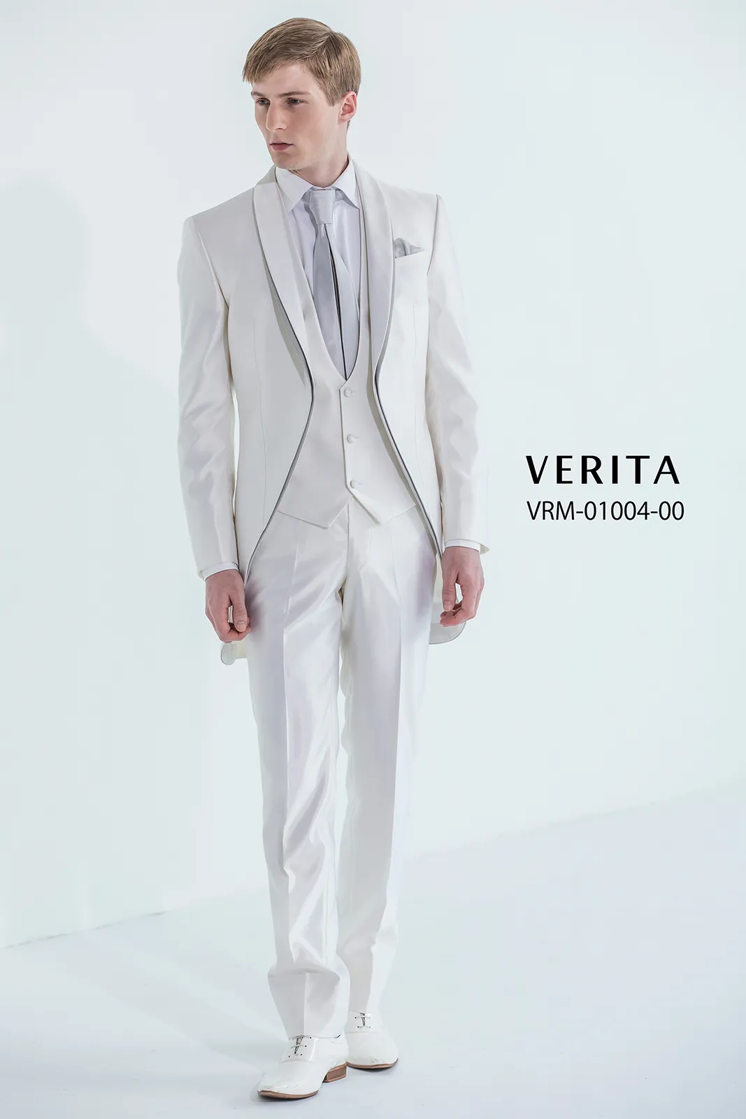 結婚式で最も多く着用されるのがタキシードですが、形だけではなくサイズ、 色のバリエーションも豊富で、普段着ることが少ない白系タキシードや、 光沢感があり個性的なデザインのタキシードは当日の結婚式をより素晴らしいものにしてくれるでしょう。 結婚式の雰囲気、花嫁の衣裳とのバランスを考えて新郎も主役にふさわしい一着をお選び頂ければ幸いです。
