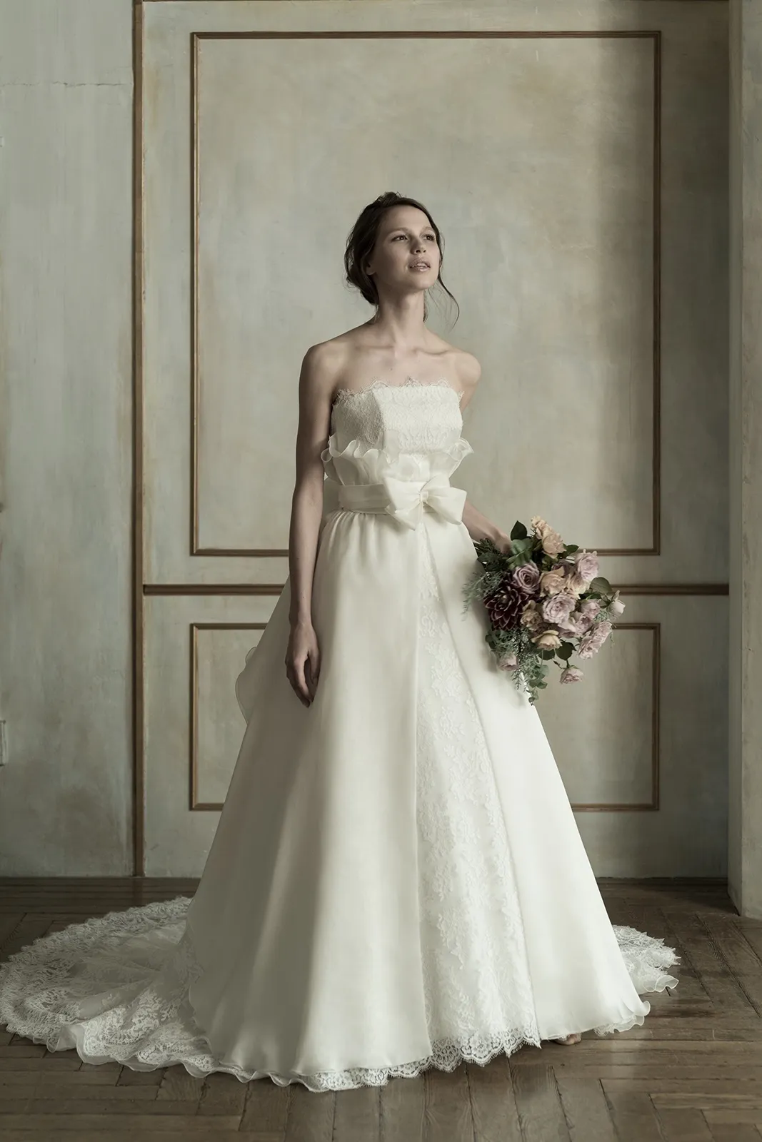 一生に一度のドレス選びはゆっくり時間をかけてお選び下さい。ご自身の好みや雰囲気に合うか等は、 ドレスのシルエットや素材感によって異なりますので、色々なドレスを着比べてみて下さい。 主に後姿が注目されるチャペル挙式をご希望されている方にとってはバックスタイルも非常に重要ですので、 トレーンの長さも大切なポイントとなるでしょう。自分を最高に輝かせてくれる運命の一着を見つけて、 素敵な結婚式の一日をお過ごし下さい。